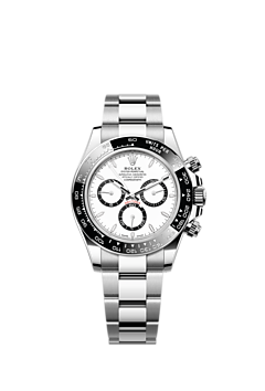 This Oyster Perpetual Cosmograph Daytona in Oystersteel with a white dial and an Oyster bracelet, features a black Cerachrom bezel with tachymetric scale.