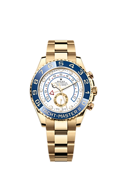 The Oyster Perpetual Yacht‑Master II in 18 ct yellow gold with an Oyster bracelet and a bidirectional rotatable bezel with a blue Cerachrom insert.