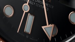 This model features a black dial and a two-colour Cerachrom bezel insert in brown and black ceramic. In addition to conventional hour, minute and seconds hands, the GMT-Master II features an arrow-tipped hand, which circles the dial once every 24 hours, as well as a bidirectional rotatable 24-hour graduated bezel.
