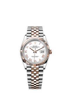 ROLEX DATEJUST TOW TONE ROSE GOLD WHITE ROMAN DIAL JUBILEE BRACELET 36MM – 126231