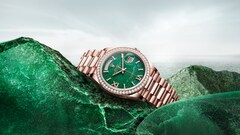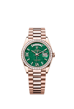 The Oyster Perpetual Day-Date 36 in 18 ct Everose gold, with a green aventurine, diamond-set dial, diamond-set bezel and a President bracelet.