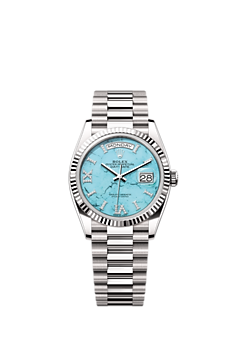 Only found in a few places on Earth, turquoise has been prized for thousands of years for its special hue. Rolex selects turquoise for the beauty of its structure and its characteristic, rare blue colour, because it marries perfectly with yellow and white gold. It is exclusively reserved for gold or platinum versions of the Day-Date 36.